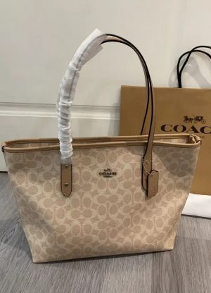 Coach_Signature_City_Tote_Bag_With_OG_Red_Box_(55398_Milk_Tea_Color)